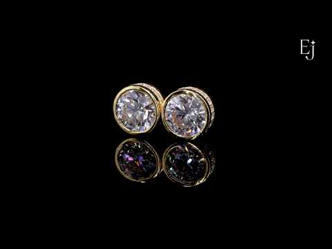 10 Ctw Round Diamond Stud Earrings In Bezel Setting